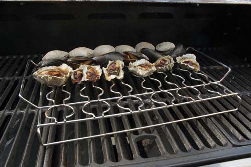 Theres nothing like the high dry heat of the grill to bring out the briny succulence of oysters clams and mussels. Our stainless steel shellfish rack is designed to hold shellfish flat during grilling so you keep the succulent juices where they belong-in the shellfish not on the coals. The seafood rack can also be used to grill unforgetable hors doeuvres like stuffed mushrooms or artichoke hearts.